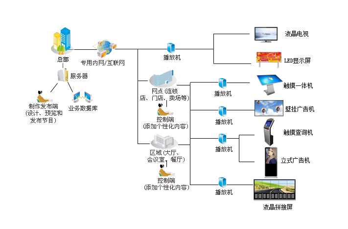 多媒體信息發布系統是利用顯示屏將企業宣傳、實時通知全方位展現出來的一種高清多媒體顯示技術。系統是將音視頻、電視畫面、圖片、動畫、文本、文檔、網頁、流媒體、數據庫數據等組合成一段段精彩的節目,并通過網絡將制作好的節目實時的推送到分布在各地的媒體顯示終端,從而將精彩的畫面、實時的信息資訊在各種指定場所全方位的展現在所需的群眾眼前。