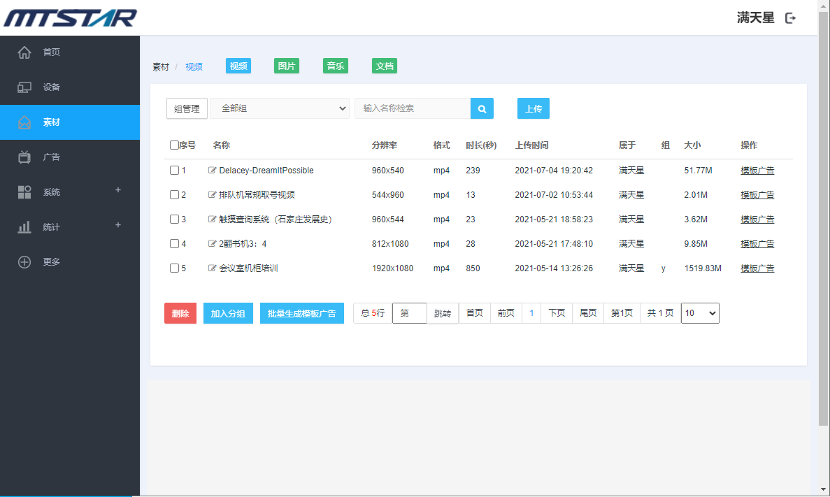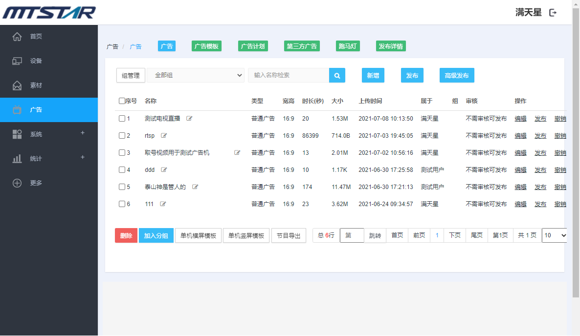 (3)終端管理:終端監控、快速發布、時間同步、音量調節、下載限速、開關機、遠程更新、觸摸管理等;