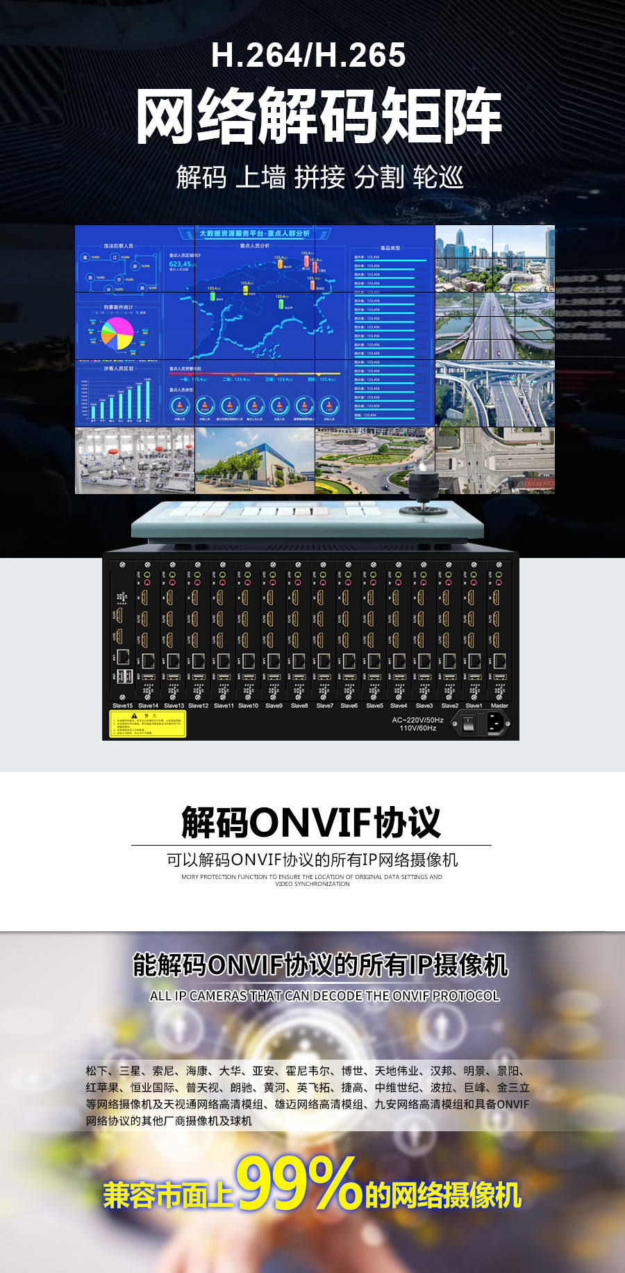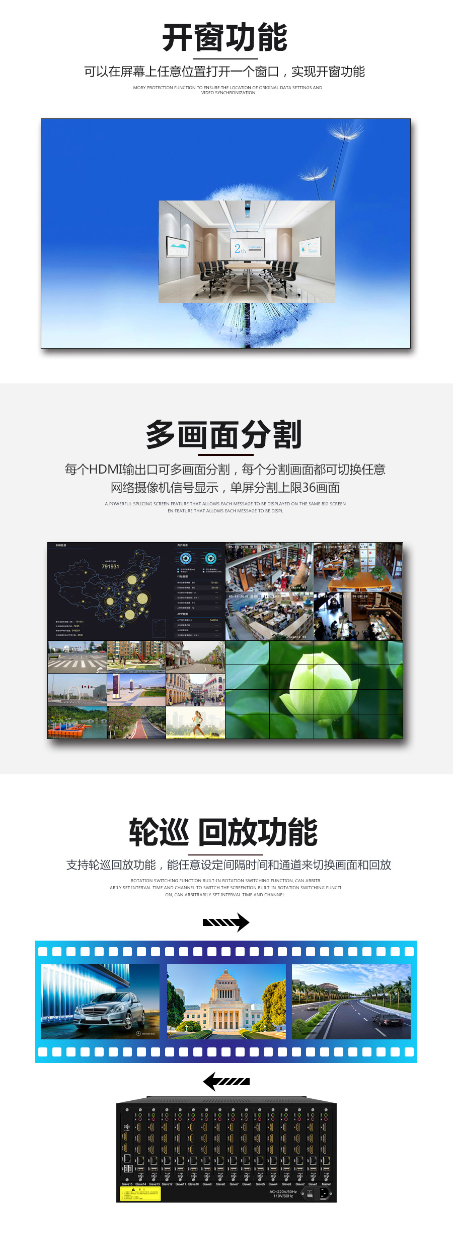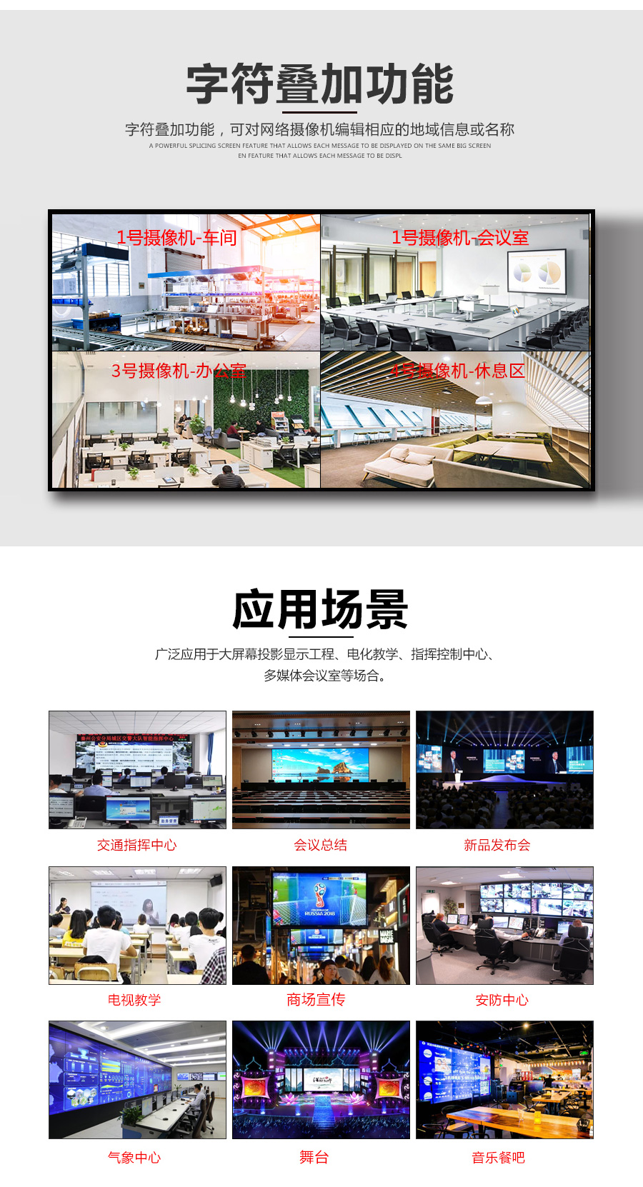 產(chǎn)品用途:搭配拼接屏使用,有解碼、拼接、分割、開(kāi)窗、漫游等功能