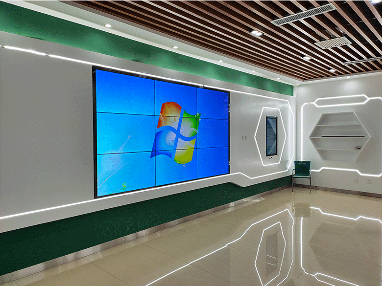 雄安某公司展廳項目,前期因為其他裝修項目的延期,導致后面項目施工時間壓縮,留給拼接屏安裝調試的時間僅一天,達林給出承諾:可以完成!沒有其他語言,達林人用行動實現了諾言! 留給安裝的時間本來就少,現場又遇到情況—嵌入安裝的后墻不平,加大了安裝難度。現場安裝人員和技術經過一天一夜的努力,研究解決方案,最終克服了現場難題,按時完成了安裝調試的任務。